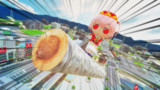 柱の代わりに丸太を投げつけて飛び乗り何処かに向かうふもふもみとりの図(…