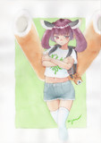 ホットパンツで小学校に登校中の東北きりたんです。自分で選んだTシャツの…