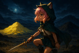 夜の荒野の冒険娘