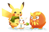 ピカだるま、上手く作れてるかな? 雪遊びをするピカチュウとそれをじーっ…