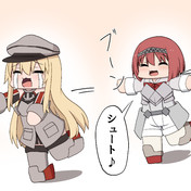- おもちゃで遊ぶアークとビスマルク