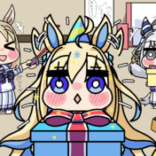 - ヒシミラクルたちに誕生日を祝われるネオユニヴァース