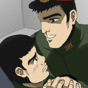 嶋本を押し倒す小早川大尉