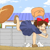 パンを投げつけるキキ